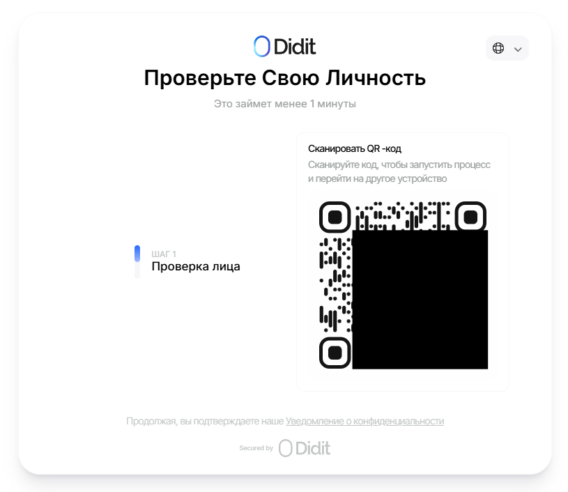 Открыть ссылку необходимо с телефона. Если откроете ее с компьютера, то на экране отобразится QR-код для прохождения верификации с телефона.